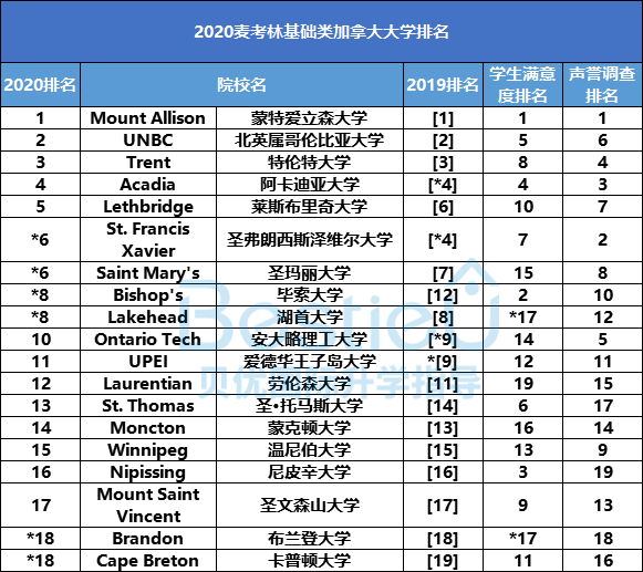 基础类排名顾名思义,涵盖的是那些大学规模相对较小,提供研究生课程较少的加拿大高校。