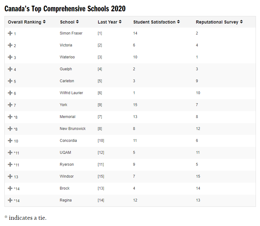 综合类排名则将同时提供大量本科、研究生学位课程和相关专业课程的加拿大综合性学府进行排序。