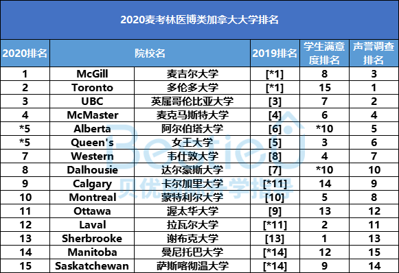 2020麦考林医博类加拿大大学排名