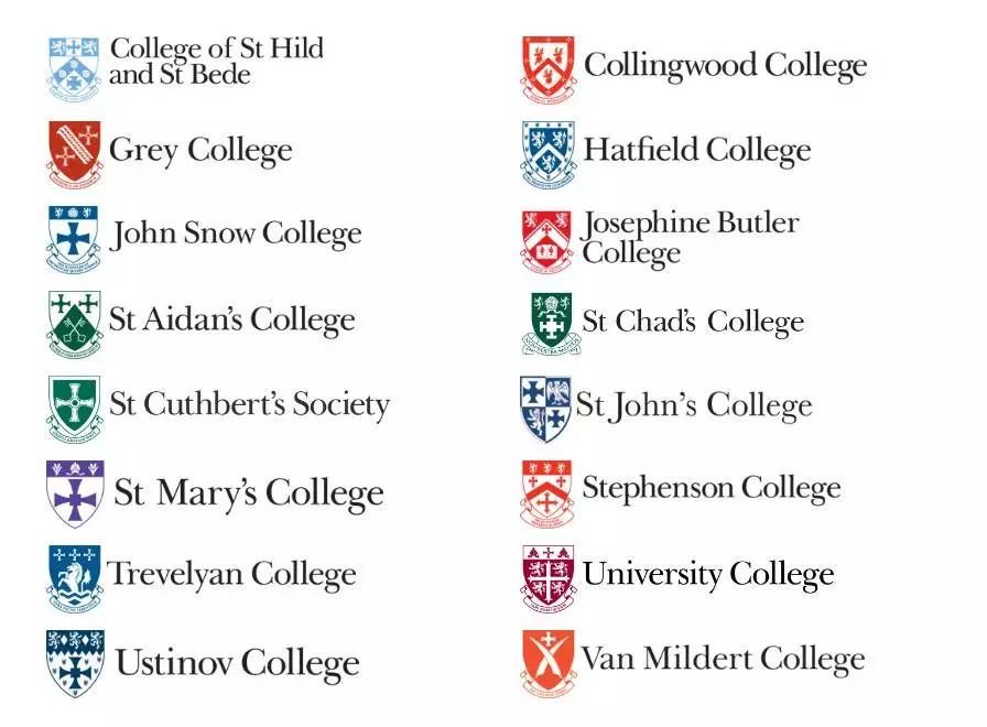 杜伦大学各学院校徽: