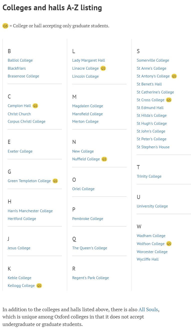 就像上面提到的,上图中备注GS的学院只接受研究生入学申请,申请牛津大学本科的一定要注意!