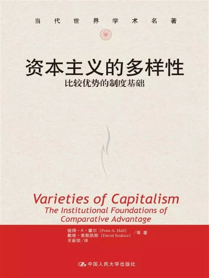 《资本主义的多样性:比较优势的制度基础》将市场经济分为两种类型(以英美为代表的自由市场经济,以德国为代表的协调市场经济),分析两种市场经济类型各自的比较优势,并从制度的角度解释发达资本主义国家之间存在差异性的原因。