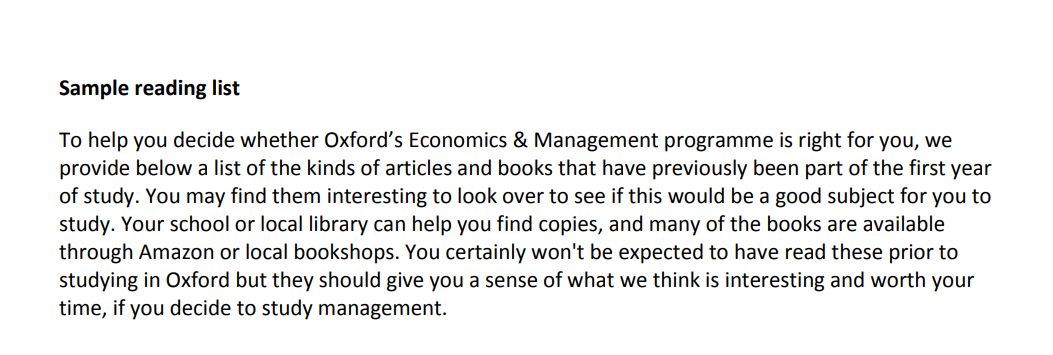 为了让希望申请牛津大学经济与管理专业的小伙伴们了解这门课程是否适合自己,牛津大学提供了相应的书单。